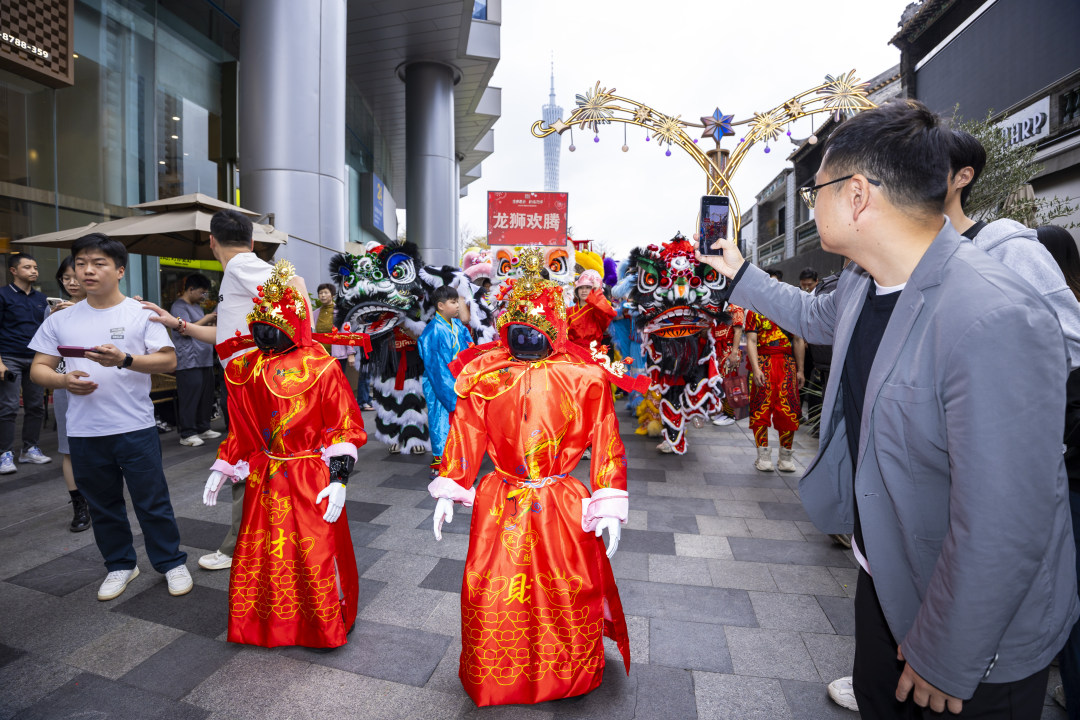 锣鼓喧天,鞭炮齐鸣!2月26日(农历正月初十)上午,一年一度的2026年猎德社区巡游活动在广州天河CBD举行。当日上午,巡游队伍从晟府广场出发,一路至猎人坊,浩浩荡荡。巡游过程中,有舞龙舞狮、英歌舞等传统民俗演出。值得关注的是,今年的巡游活动还融入了科技元素,身穿喜庆服饰的机器人在CBD里跳起了舞,引得不少市民游客大喊“精彩”。
