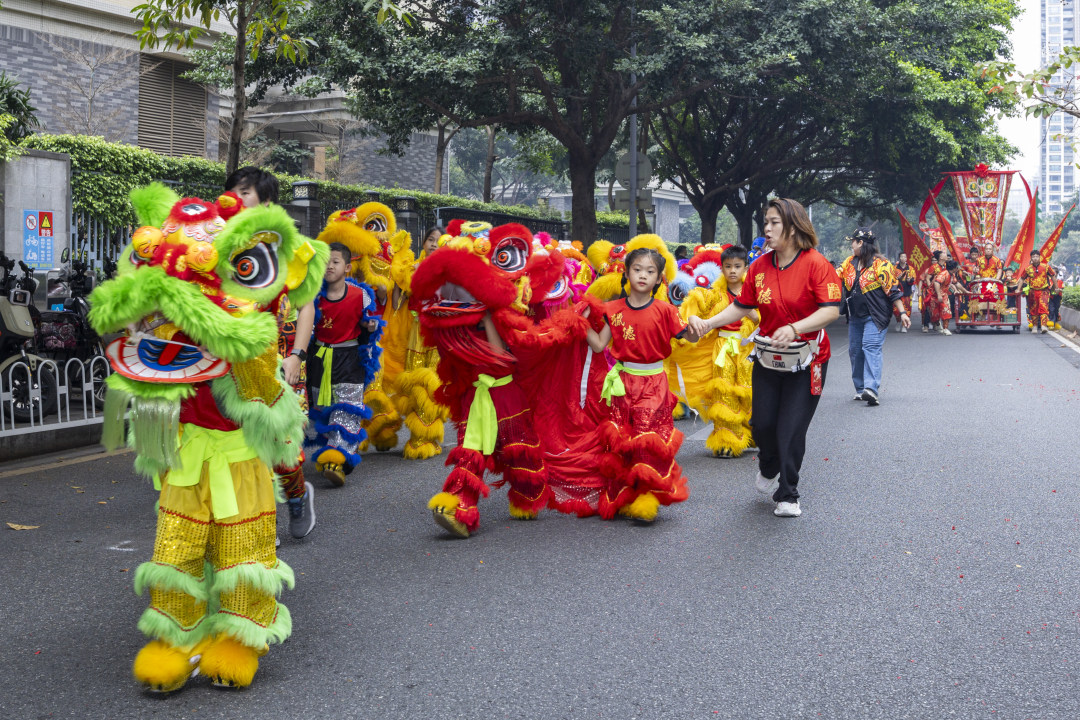 大年初十,猎德新春大巡游,“小狮子”也是巡游队伍中的一个方阵。