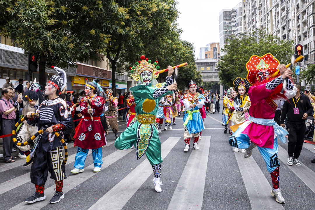 大年初十,猎德新春大巡游中的英歌舞方阵。