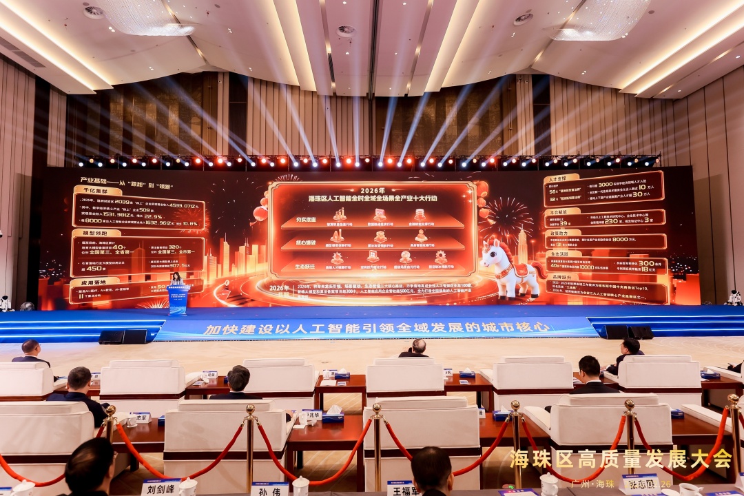 2026年,海珠区将聚焦龙头引领、场景驱动、生态营造三大核心路径,力争落地高成长性人工智能企业超100家,新增大模型和算法备案项目超200个,人工智能应用企业营收超500亿元,全力打造全国领先的人工智能产业集聚区。