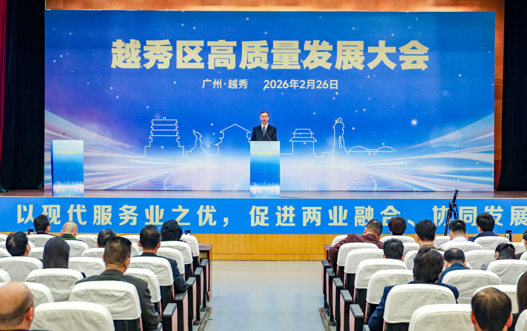 2月26日,广州市越秀区委、区政府召开全区高质量发展大会,认真落实全省、全市高质量发展大会部署要求,立足越秀实际推动现代服务业提质增效,推进“两业”双向赋能,更好实现区域高质量发展。