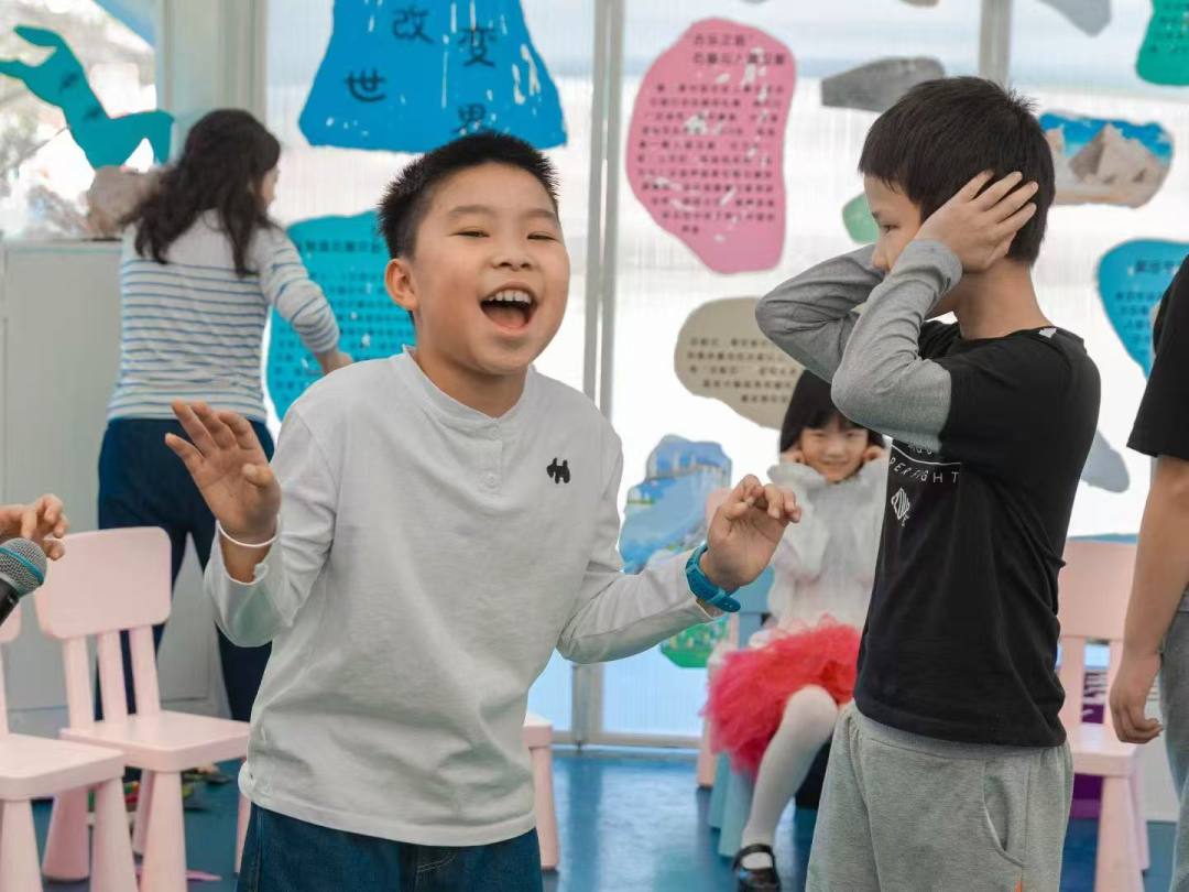 在艺术的世界里,特需儿童能够在最少限制的环境中获得适当的教育,融入群体中。他们可以和别的孩子听着字母歌,用身体摆出ABC的造型;可以大声唱《Hi!How are you》,和身边的小伙伴打招呼、握手;也可以在读古诗词《元日》的过程中找到声调,把它创作成一首朗朗上口的歌。