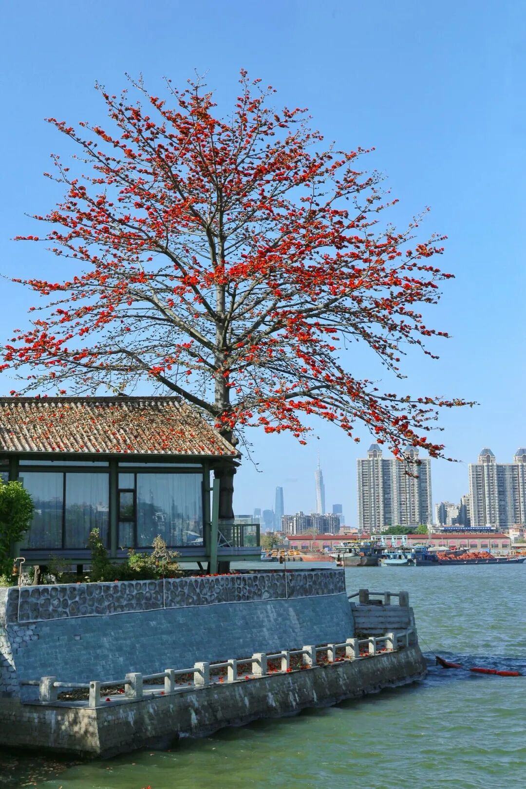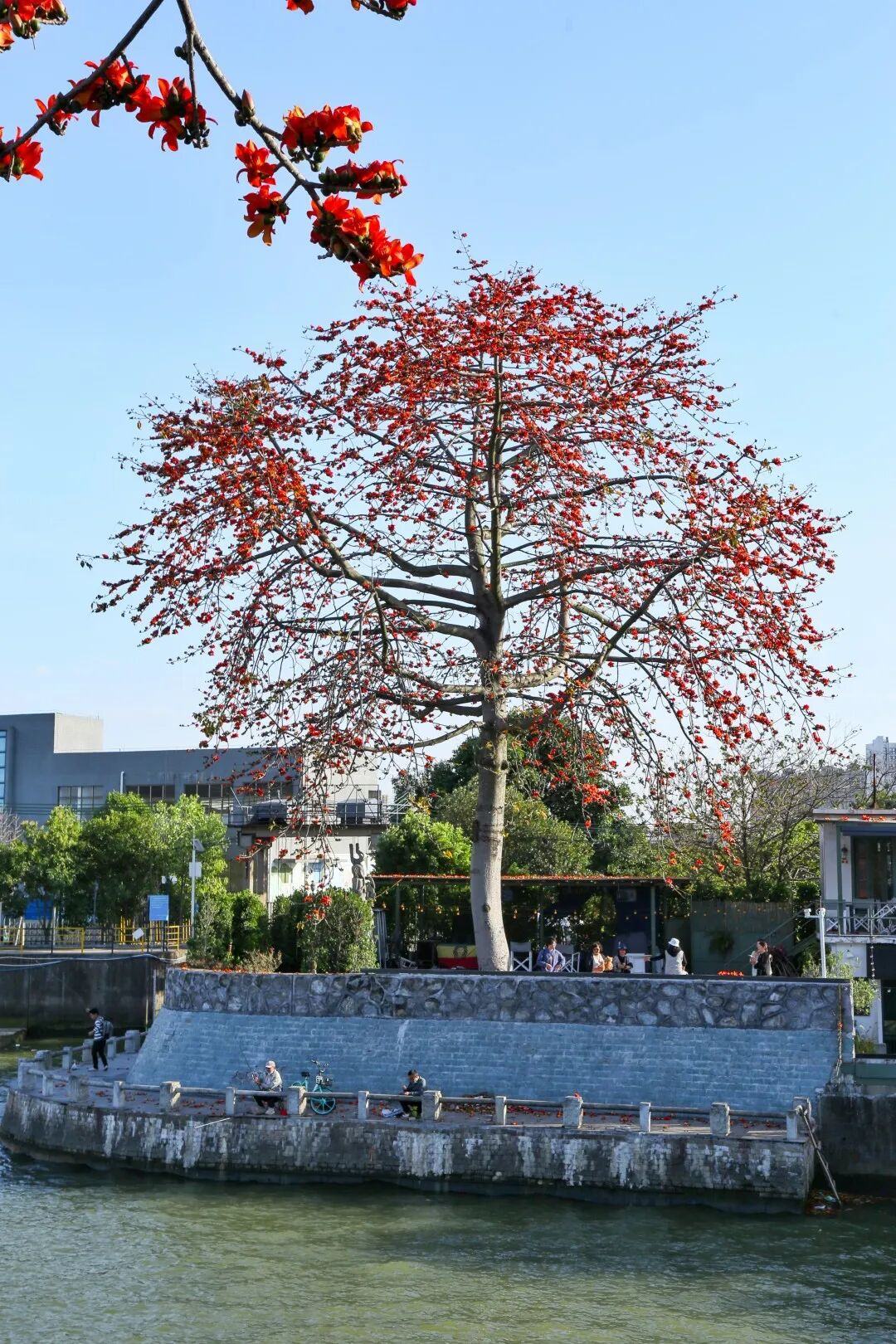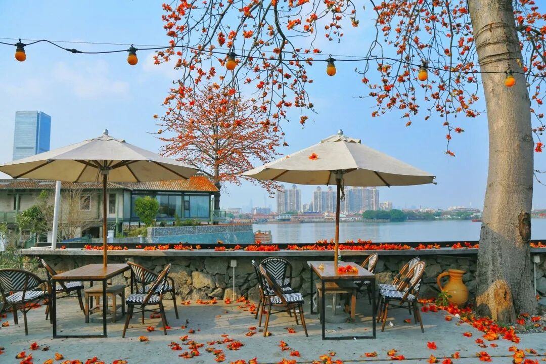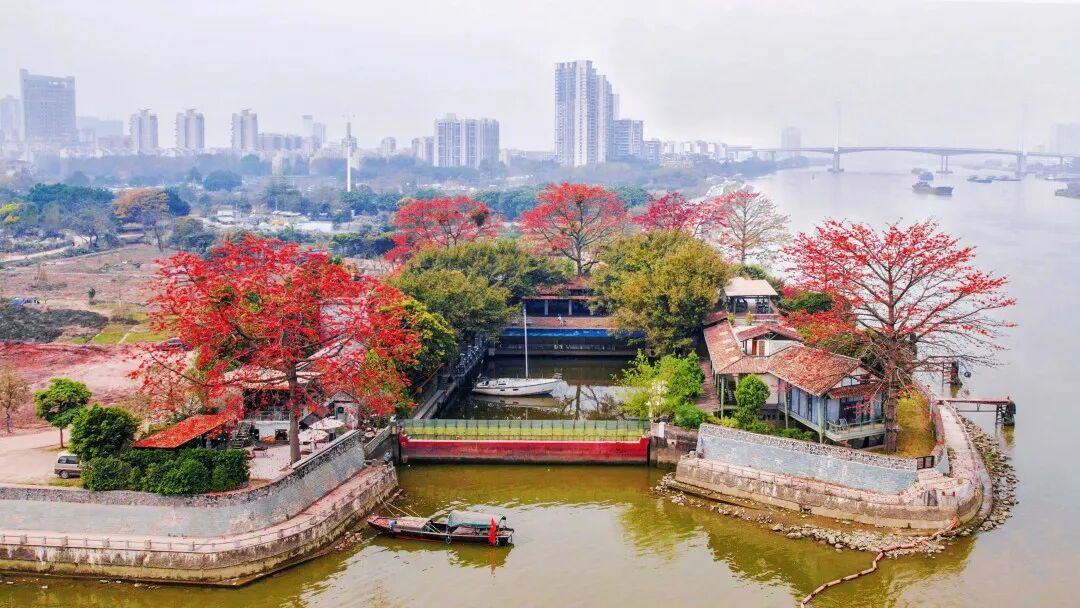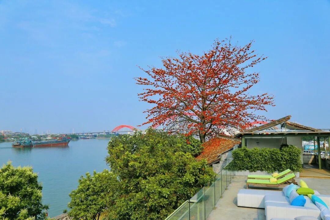 春日正好,英雄花开。位于洛浦街上漖村珠江之畔的喜临院,最近因为院内的6棵木棉树火了!这片由旧船厂改造的休闲空间,如今被热烈的红云笼罩,成为不少街坊私藏的“江景赏花打卡地”。