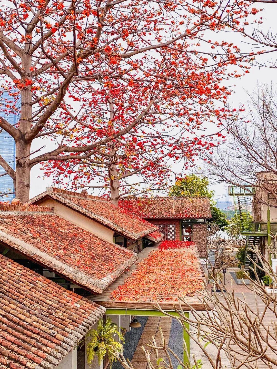 走进院内,你会发现这6棵木棉树的分布错落有致,无论从哪个角度取景,都别有一番风味。