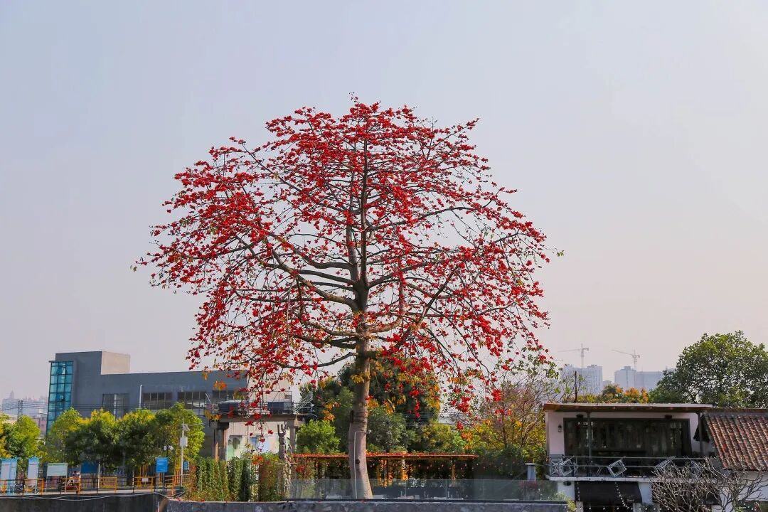 那几棵高大的木棉树已然花开满枝。