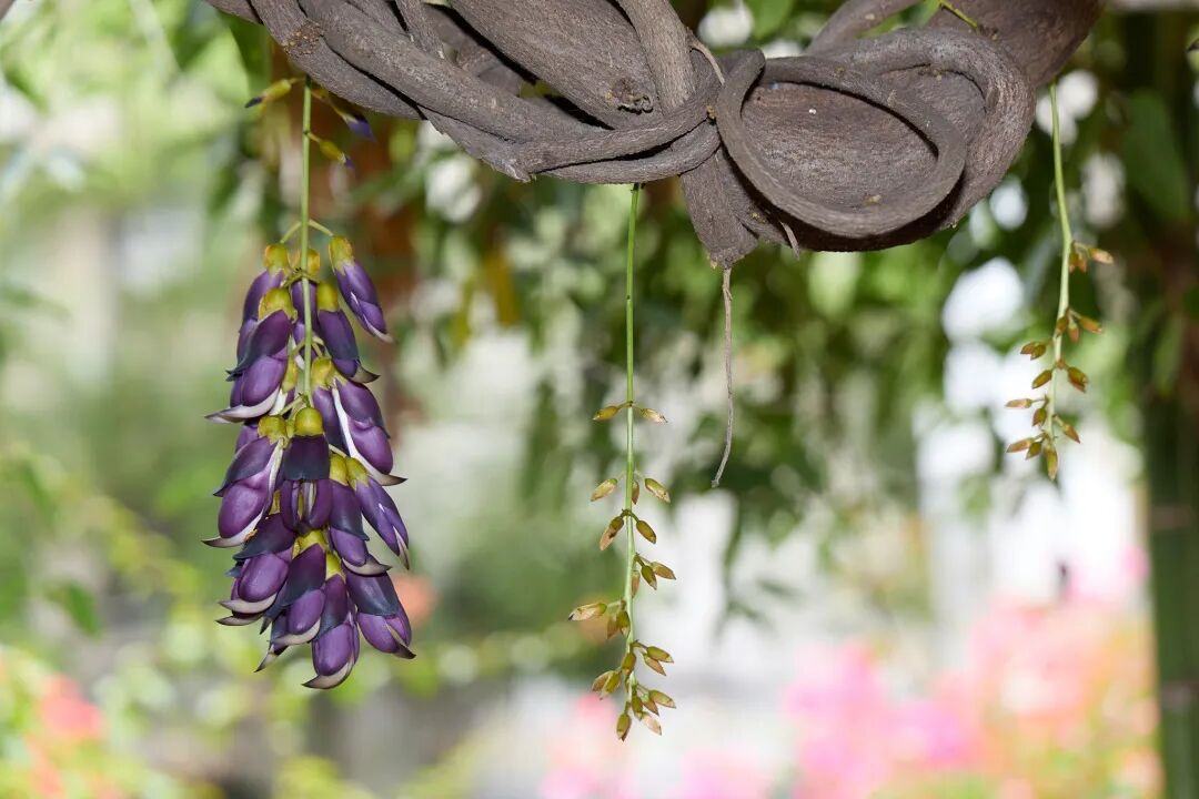 禾雀花的最佳观赏期在2月底至3月上旬,现在正是欣赏“含苞待放”的绝佳时机。这种花先花后叶,花开时满树不见一片青叶,只有成串的“雀鸟”缀满藤蔓,形成一道独特的自然景观。