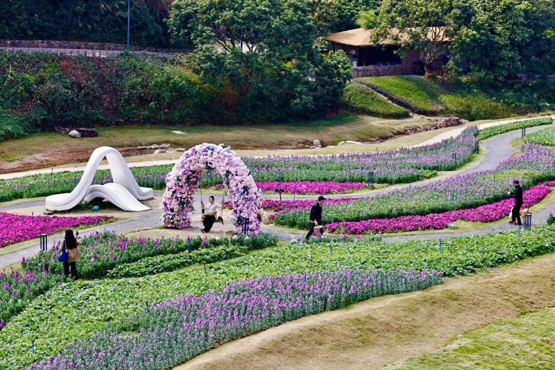 ▲从化区天人山水景区里,花卉园艺被修整得如画景一般美。