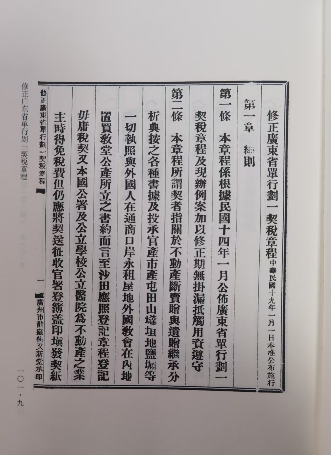 文献以铅印本为主,也包括部分油印本和抄本,如《广州市政府各项税捐法规汇编》《建设法规汇刊》《修正粤东查变官有不动产地章程》《广州律师同业录》《第四军纪实》《新广州建设概览》《广东经济调查报告》等,反映了广州作为近代化先驱城市在政治治理、社会转型与经济建设等方面的历史轨迹,具有重要的史料价值与学术价值。