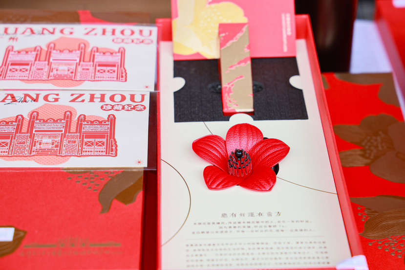 潮墟现场设置红色邮局、青少年红色文创展示区、手作体验区、非遗展示展销以及打卡互动装置,百余款“红棉文创”新品集中亮相。“英雄花开英雄城”纪念邮折、红棉徽章、定制文创套装等创意产品,将木棉元素、红色文化与现代设计理念有机融合,让红色文化可触可感、可带可藏,真正走进百姓生活。一枚徽章、一本邮折,既是纪念品,更是精神载体,让市民游客在带走文创的同时,也带走一份英雄精神的印记。