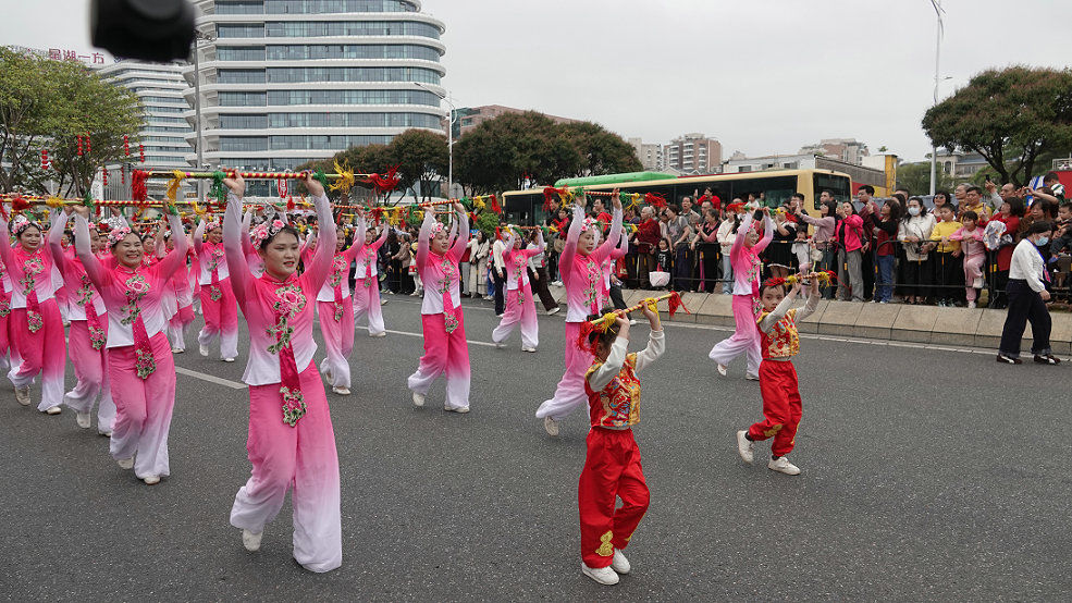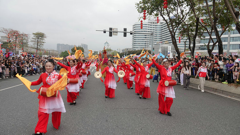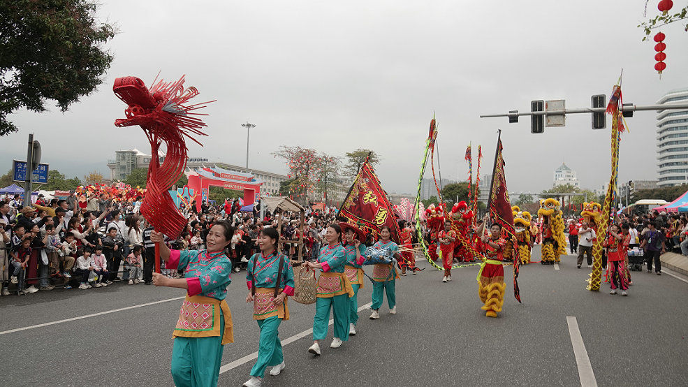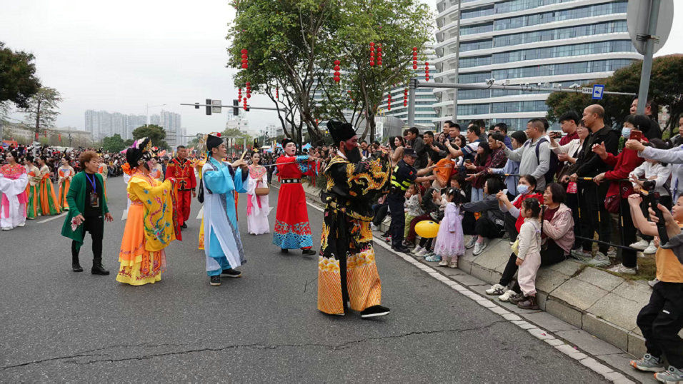 3月1日下午,“广府风韵汇星湖 多彩非遗闹元宵”2026肇庆广府文化庙会非遗巡游活动在端州区七星岩东门广场举行,共有25支方阵队伍、1000多人参与巡游,规模为历届最大。