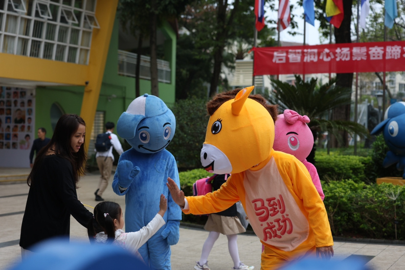 番禺区京师南奥实验学校迎来暖意融融的马年迎新活动。校门口,属马的六年级同学化身代表校训“高雅做人,卓越做事”的吉祥物“卓卓”“雅雅”,属马的老师化身骏马惊喜亮相,萌趣十足。属马的学子亲手为同学们送上精美马饰品,寓意一马当先、马到成功。创意满满的暖心仪式,让新学期充满欢乐与期待,成为校园里亮丽的风景。