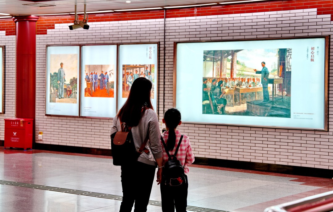 45幅馆藏画作将地铁站厅变身红色展厅。