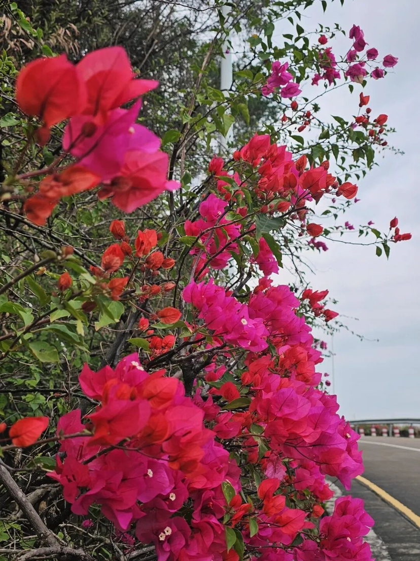 沿路还铺展了不少毛杜鹃和三角梅,团团簇簇地将山坡染成了斑斓的锦缎,一边爬山,一边赏花,旅途的疲惫都能减轻几分。