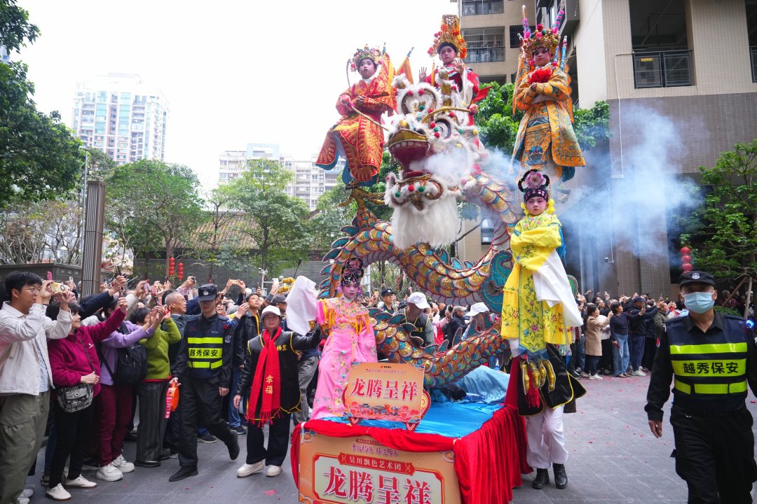特邀而来的潮阳英歌舞、吴川飘色、中国木偶、川剧变脸和从化水族舞等国家级、省级非遗代表性项目惊艳亮相,不同地域的文化风情在杨箕街头交相辉映,为元宵民俗活动增添了别样韵味。