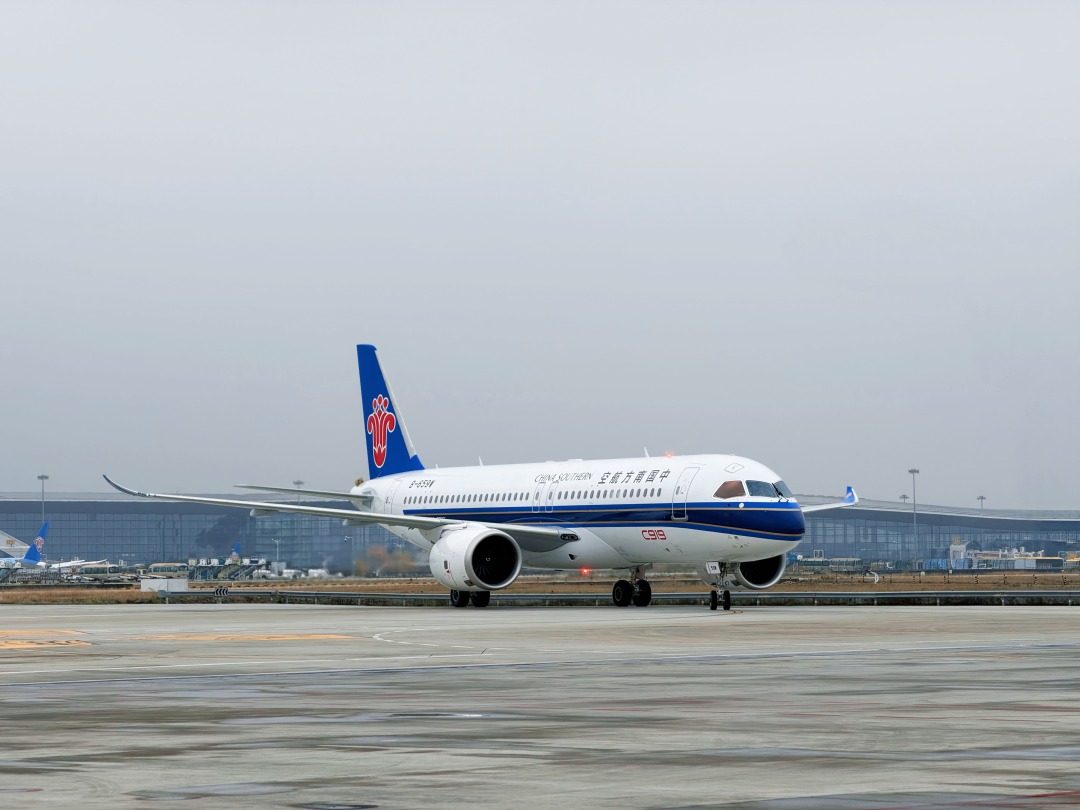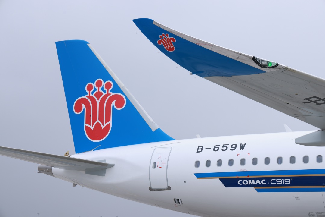 3月2日11时45分,一架飞机机号为B—659W的国产大飞机C919从上海浦东国际机场飞抵广州白云国际机场,标志着南航第十架C919国产大飞机正式入列。