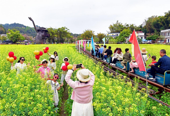油菜花正值盛放期,自驾导航「花都区梯面镇红山村」即可;花田拍照建议穿白色、米色等浅色系衣物,与金色花海相映,出片效果更佳。