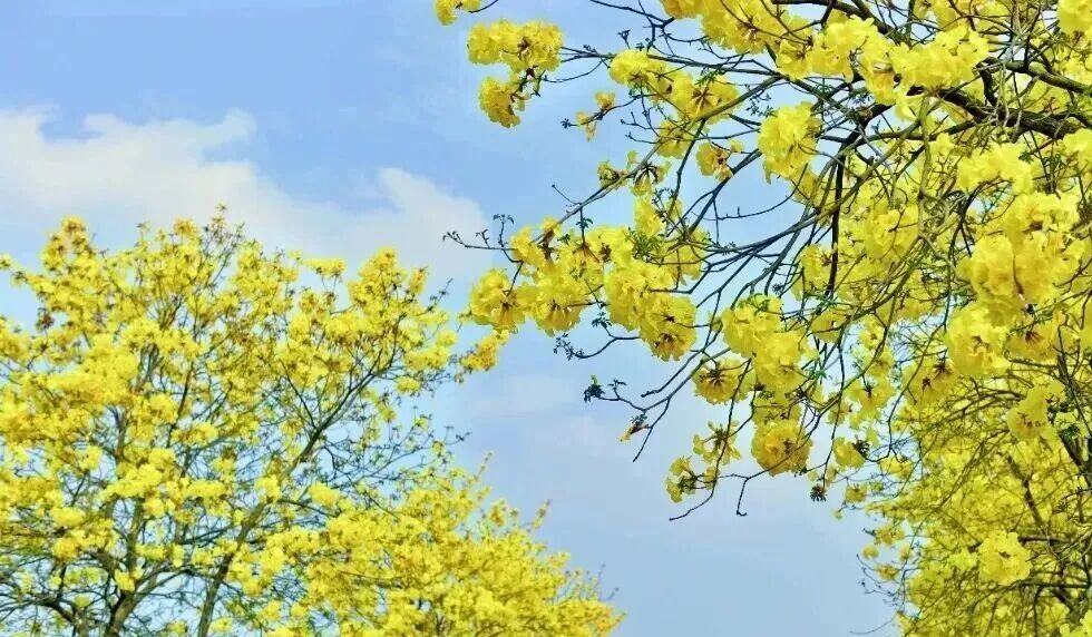 蓝田紫林满树的黄花风铃木