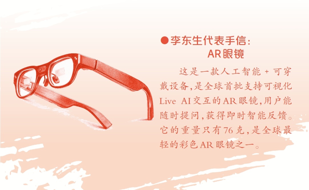 这一次我还将携带一份来自广东的“手信”,向世界展示中国“智造”、大湾区科技企业的研发能力与生产成果。它是TCL推出的、全球首批支持可视化Live AI交互的一款AR眼镜,具备AI翻译、空间导航、AI录音等多种功能,能够为用户带来更智能、更便捷的使用体验,展示了我们团队在智能可穿戴产品研发方面的前沿技术实力与生态布局成果。