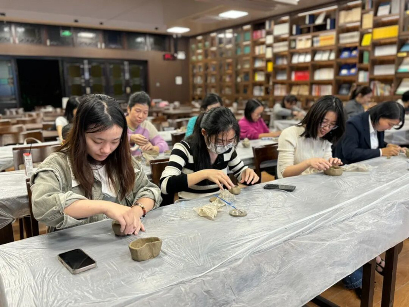 海珠区文明(青年)夜校开展新时代文明实践活动,体验陶艺雕塑文化。