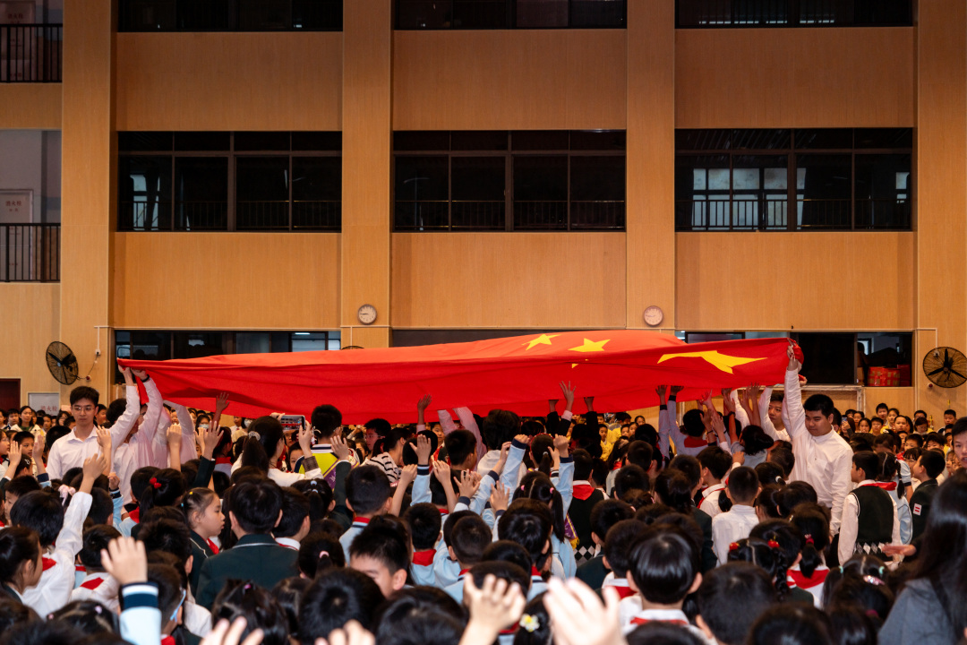 开学第一天,广州高新区第一小学的同学们聆听《在国旗下成长》开学思政第一课。图片由采访对象提供