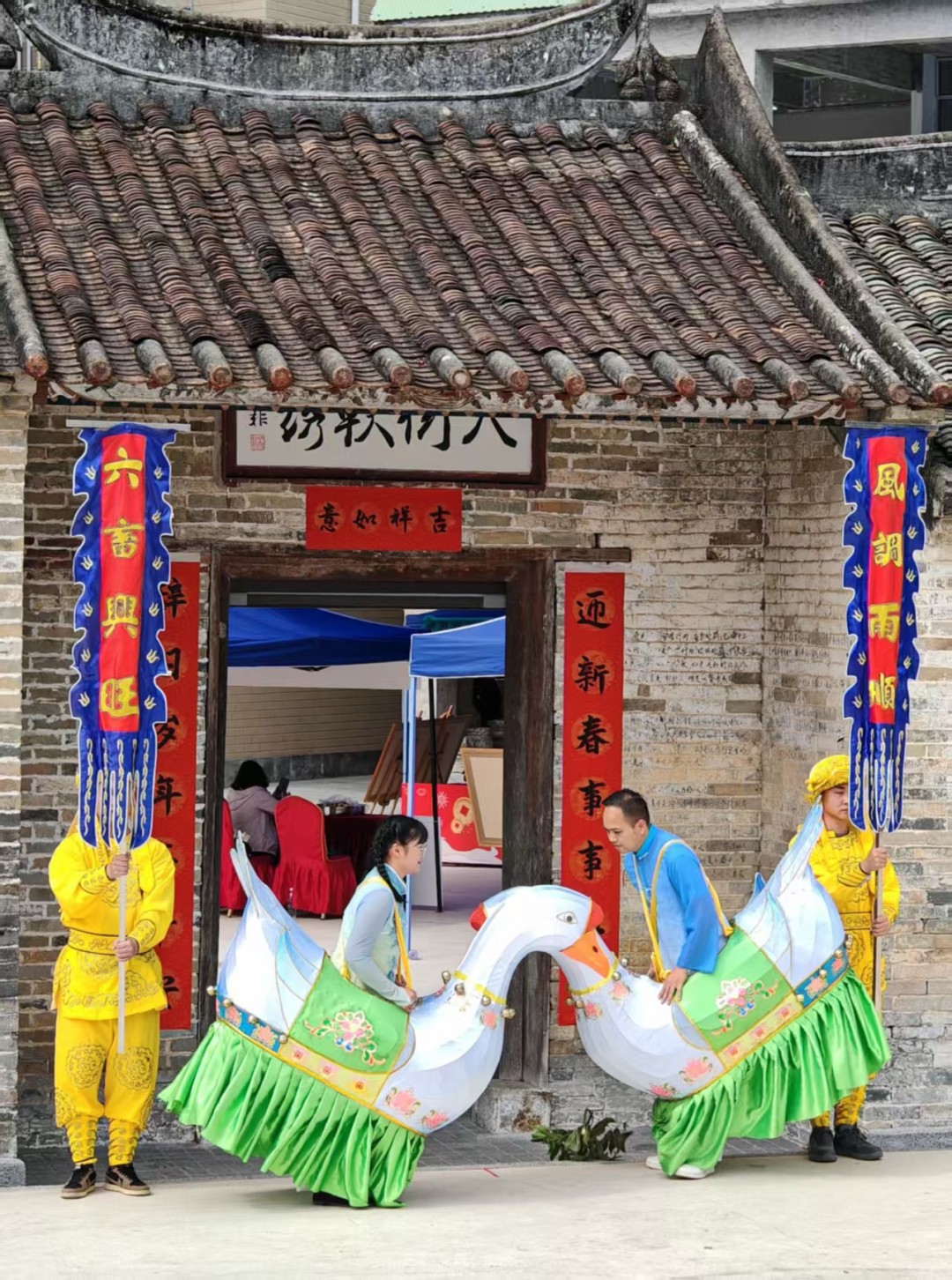 麻榨镇中心村地处环南昆山-罗浮山县镇村高质量发展引领区,下午2时,艺术装置环境表演率先拉开帷幕。跨界融合表演《鹅城东坡》、双人舞《嘉禾望岗》、国家级非物质文化遗产惠东渔歌《白丝丝》以及龙门农民画旗袍秀等节目精彩上演,随后麻榨镇政府选送的民俗表演《舞春牛》与龙门县龙狮运动协会的醒狮表演《步步高升》热场助阵,吸引了众多群众驻足观看。