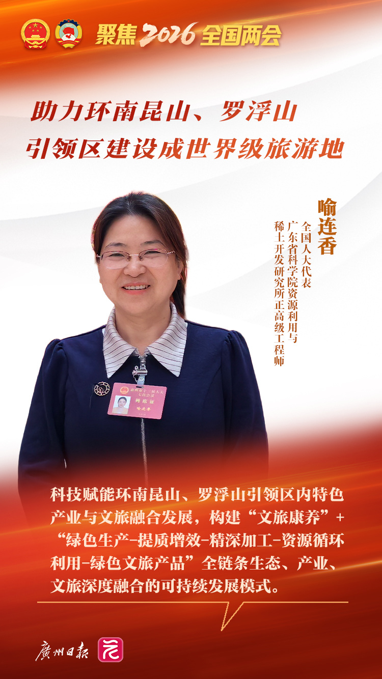 “今年我多次参与人大和科研单位组织的环南昆山、罗浮山引领区建设情况调研,一直在关注科技如何赋能环南昆山、罗浮山引领区的建设;同时也在关注战略矿产资源综合利用中试验平台的建设等议题。”在2026年全国两会召开之际,全国人大代表、广东省科学院资源利用与稀土开发研究所正高级工程师喻连香向记者介绍了她今年重点关注的议题。