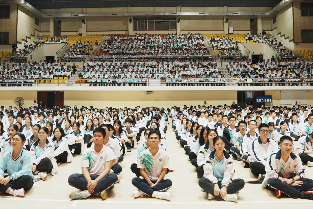 二要驰马沐韶华,在健康成长中涵养健全人格。董再明以纪中学子李美妮在第十五届全运会上凭借强大的心理调适能力,最终在攀石赛中勇夺金牌的故事,结合高考中考对人的心智磨炼,勉励所有纪中学子淬炼“宝剑锋从磨砺出,梅花香自苦寒来”的坚毅,永葆“竹杖芒鞋轻胜马,一蓑烟雨任平生”的豁达,常怀感恩之心,锤炼坚韧品格,涵养乐观心态,在青春赛道上驰马沐韶华,不断突破和超越自我。