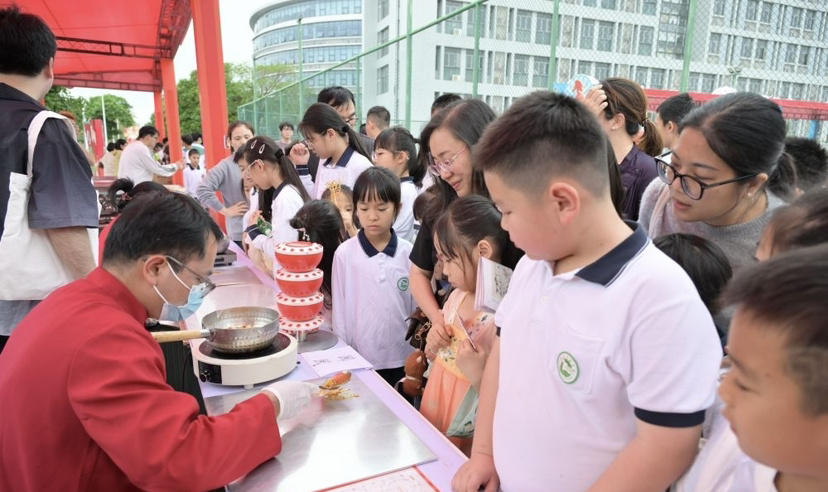 舌尖上的非遗,同样精彩纷呈。“享”区香气四溢,十五个美食摊位荟萃番禺地道风味。沙湾姜撞奶、生滚猪杂粥、煲仔饭、碗仔翅、光皮乳猪、糖画……孩子们手持“非遗币”穿梭其间,大快朵颐,各个美食摊位前纷纷排起了长队。