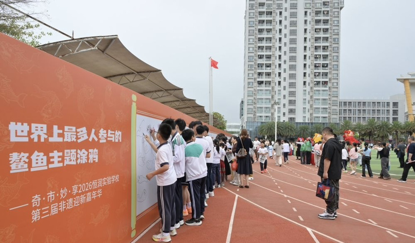 3月1日下午,“奇·市·妙·享”2026广州市番禺恒润实验学校第三届非遗迎新嘉年华在校园内盛情开幕。活动现场人声鼎沸,近5000名师生与家长穿梭其中,共同开启一场沉浸式的岭南非遗探索之旅。