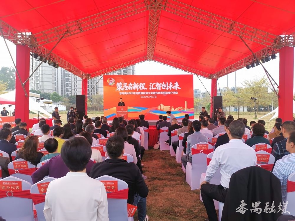 2月27日上午,番禺区东环街2026年高质量发展大会暨招商推介活动在东沙村禾田悦农业生态园举行,区有关领导、东环街全体班子成员,区“百千万工程”指挥部办公室、区发展改革局、区科工商信局、区农业农村局、区统计局、区招商办相关负责人,东环街各部门、村(社区)负责人及园区、企业代表等参加。