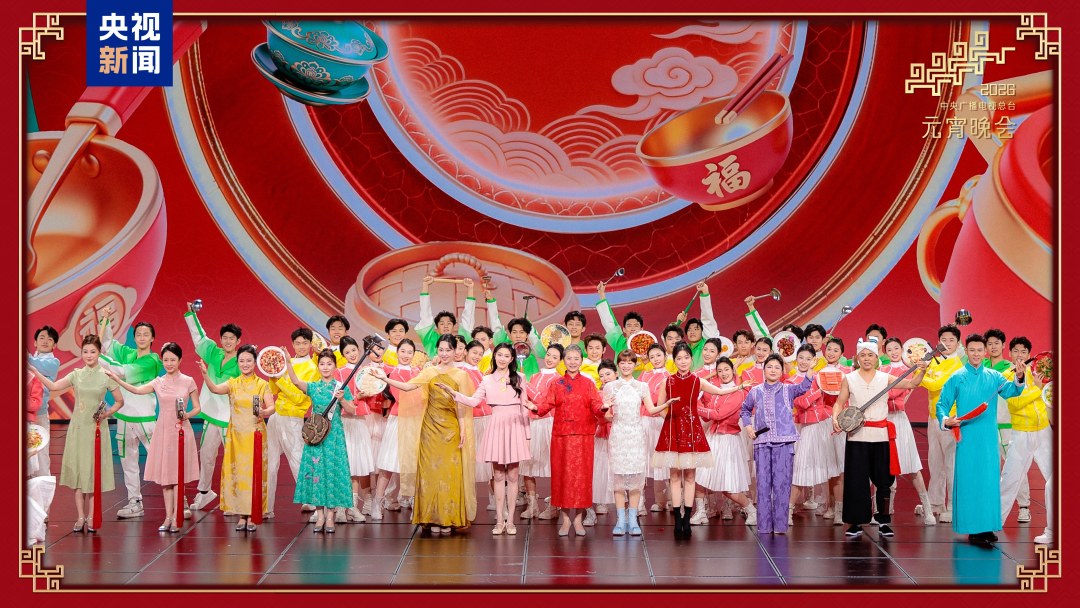 曲韵流转,古风出新意。创编戏歌《春江花好月圆夜》在流行旋律中融入京剧、昆曲、沪剧、川剧等不同剧种声腔,用“何处春江无月明”的经典名句,唱出花好月圆的美满希冀。在曲艺新唱《学做团圆饭》中,北京单弦、陕北说书、上海说唱、河南坠子轮番登场,将油泼面、烤鸭、涮肉、各式汤羹等南北风味写进歌词,传递出烟火气中的团圆滋味。
