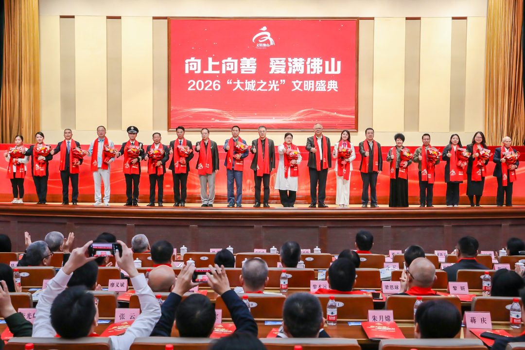 3月3日上午,正值元宵佳节,“向上向善 爱满佛山”——2026“大城之光”文明盛典在佛山市机关大礼堂隆重举行。20位来自全市各行各业的向上向善文明力量代表登上舞台,接受全城礼赞。佛山市委书记唐屹峰、佛山市人大常委会主任胡钛、佛山市政协主席李政华出席活动。