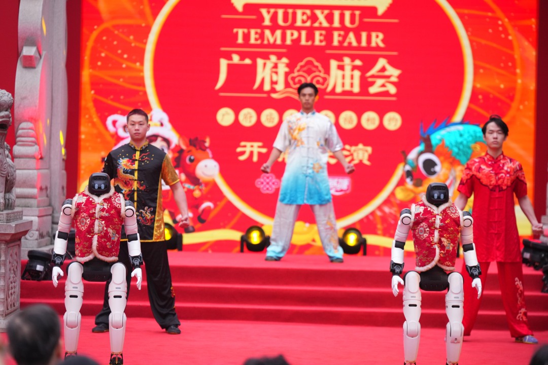 潮涌湾区活力广府,展现传统与现代的双向奔赴,尽显广府文化的包容与创新。梁山山、彭永琛、莫家淦三位粤港澳歌手同台唱响《湾区同声乐升平》,悠扬歌声串联起湾区同心的深情厚谊,彰显广府庙会作为粤港澳大湾区文化交流平台的重要作用。广州火花机器人有限公司携手越秀区武术协会带来武术表演《智武耀广府》,将硬核科技与中华武术精妙融合,机器人与武术健儿同台竞技,刚柔并济间碰撞出传统非遗与现代科技的惊艳火花。
