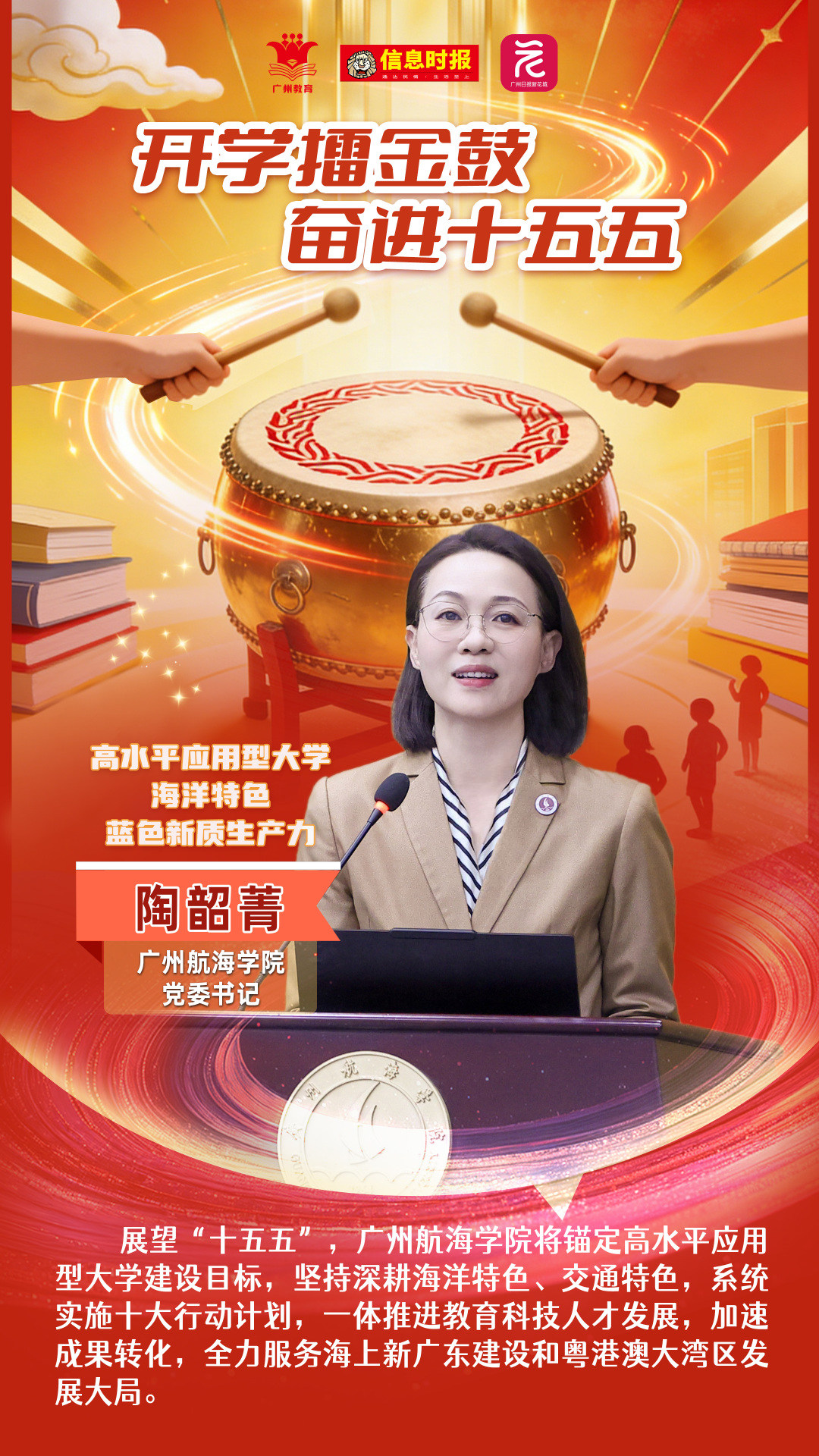 广州航海学院党委书记陶韶菁表示,“十四五”以来,广州航海学院一体推进教育科技人才改革发展,成功跻身交通强国建设试点高校“国家队”,办学指标全面达到申硕要求。