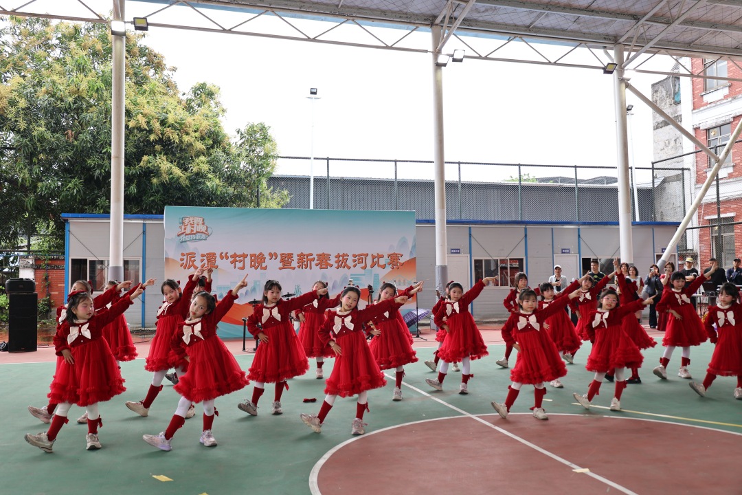 下午3时,派潭中心小学孩子们带来了欢快的舞蹈《新年快乐》,派潭“村晚”暨新春拔河比赛正式拉开帷幕。欢快的节奏、纯真的笑脸,瞬间驱散初春微寒,赢得满堂彩。