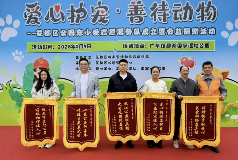 三月的花都,春意渐浓。一场以“爱心护宠·善待动物”为主题的文明实践活动,近日在花都湖国家湿地公园温情开幕。广州市花都区公园宠小爱志愿服务队正式成立,同步举行公益捐赠活动,标志着花都在探索公园文明建设与动物保护公益深度融合方面,迈出实质性步伐。