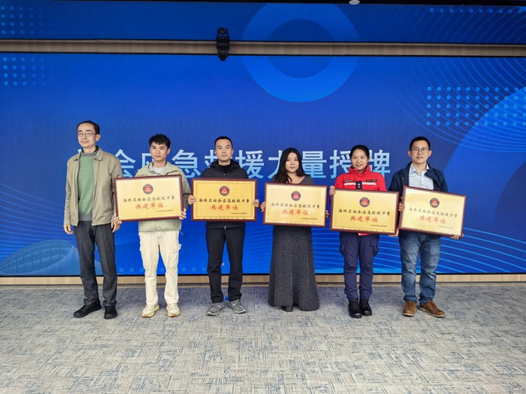 随后,广州市易恒通信科技有限公司等5家新增社会应急救援力量代表获授牌,为海珠区应急救援体系注入全新活力与新鲜血液;广东省应急协会、广州次元突破有限公司等6家“政企协同・智护平安”应急管理贡献企业获颁感谢状,表彰企业主动履责、共护城市安全的责任担当。