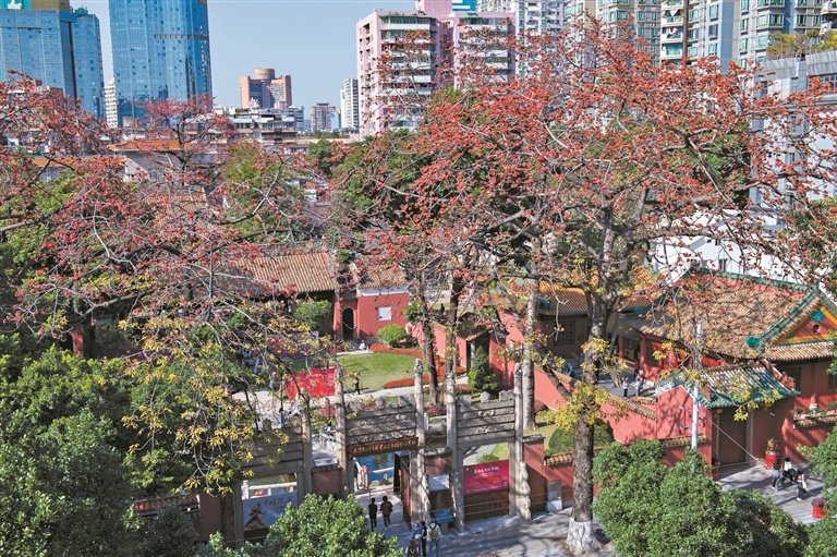 农讲所纪念馆木棉绽放。 图/广州日报新花城记者:杨耀烨