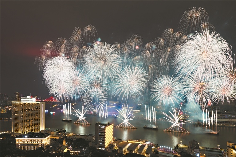2026年春节,烟花绽放珠江,火树银花不夜天。图/广州日报新花城记者:陈忧子