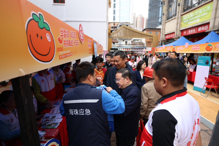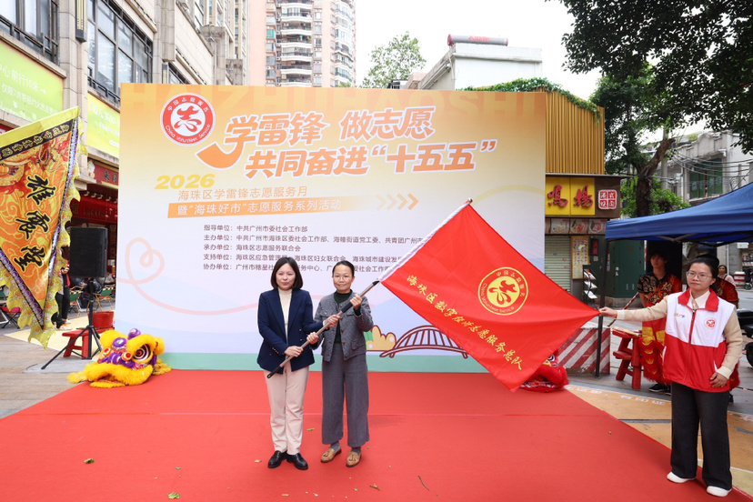 “有时间做志愿者,有困难找志愿者,让我们用脚步丈量责任,用行动传递温暖……”志愿者代表邱晓艺在现场发出倡议,话语朴实,却赢得掌声一片。伴随着一声清脆的鸣笛,2026年海珠区学雷锋志愿服务月暨“海珠好市”系列活动正式启动。