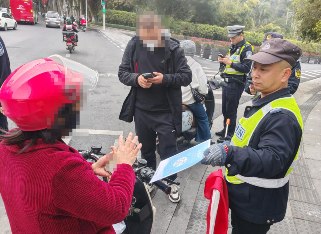 针对现场教育劝导,白云区创新推行“街头小课堂”“角色互换体验”“案例警示+实操指导”等多元宣教模式,对轻微违法驾驶人采取发放宣传资料、播放警示视频、现场演示头盔正确佩戴等方式,开展面对面风险教育;并邀请当事人临时担任文明劝导员,推动其从“被管理者”向“参与者”转变,亲身体验交通规则的重要性。