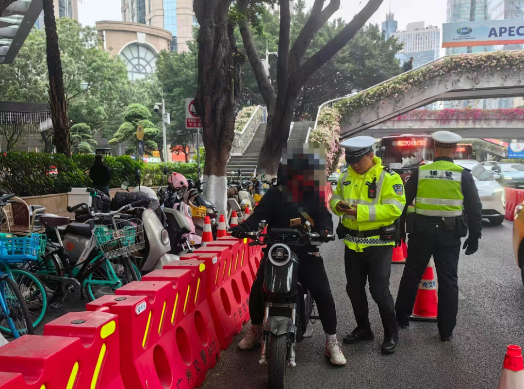 越秀区持续推进电动自行车综合治理,采取“教育劝导与严格执法”相结合的方式,针对商圈、主干道、地铁口等重点区域开展精准治理。该区在推行轻微违法现场教育劝导机制的同时,从严查处无牌上路、非法改装等突出违法行为,依法查处多起电动自行车交通违法行为,暂扣无牌假牌车辆,有效形成执法震慑。