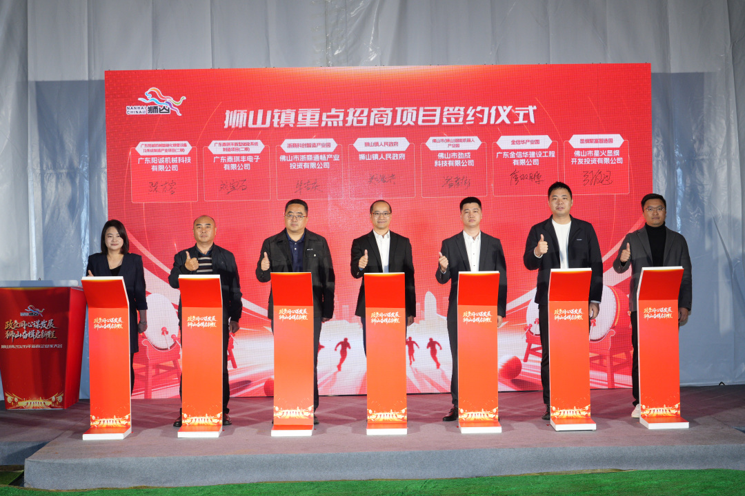 在大会的重磅环节——招商项目签约仪式上,狮山镇党委委员郑浩洪代表镇政府与6个优质产业项目成功签约,涵盖高端制造、新能源、机器人、智慧物流、电子信息等多个战略性新兴产业领域,总投资额超22亿元,拟用地面积近426亩,为狮山“十五五”开局之年注入强劲新动能。