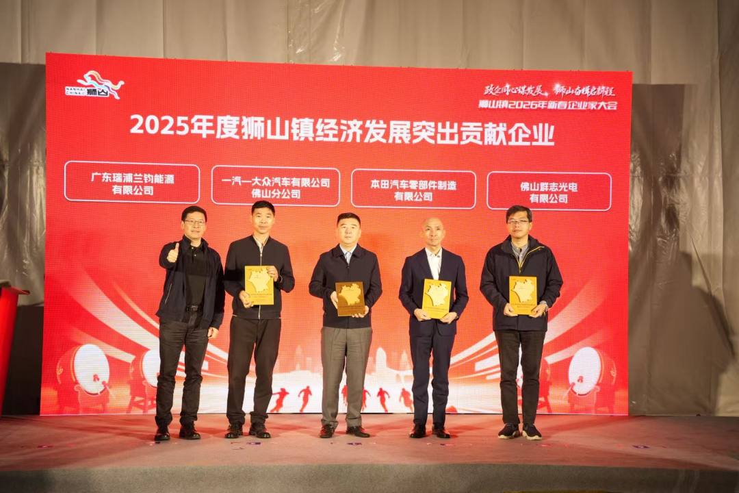 为致敬每一位与狮山同心同行的奋斗者,大会特设了礼遇环节。狮山镇党委书记梁觉聪,狮山镇党委副书记、镇长冯惠恩等镇领导依次上台,向一批优秀企业致敬。这些企业涵盖高端制造、新能源、新材料、现代物流等多个关键领域,既有一汽—大众佛山分公司、佛山群志光电、本田汽车零部件、瑞浦兰钧能源等龙头企业引领方向,也有现泰铝业、亚盈精密等成长型企业蓄势发力,更有慧谷科技、南方风机等品牌标杆精耕细作。这是对企业过往耕耘的最高肯定,更是对狮山产业生态的生动诠释——这里既有龙头引领的“硬实力”,也有中小企业蓬勃生长的“软环境”。在镇委镇政府的坚强领导下,狮山经济发展动能更加强劲,产业升级成效更加显著,土地保障更加扎实,政企同心、并肩作战的氛围日益浓厚。