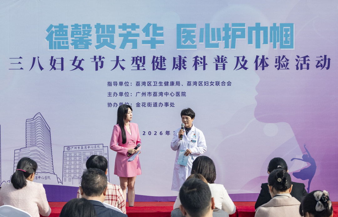 3月5日上午,由广州荔湾区卫生健康局、荔湾区妇联指导,广州市荔湾中心医院主办,金花街道办事处协办的“德馨贺芳华 医心护巾帼”三八妇女节大型健康科普及体验活动在广州陈家祠广场温情开幕。在“三八”国际妇女节即将来临之际,活动以“党建融合医疗惠民”为特色,把优质健康服务送到女性群众身边,用专业与温度诠释医者的雷锋精神与责任担当。