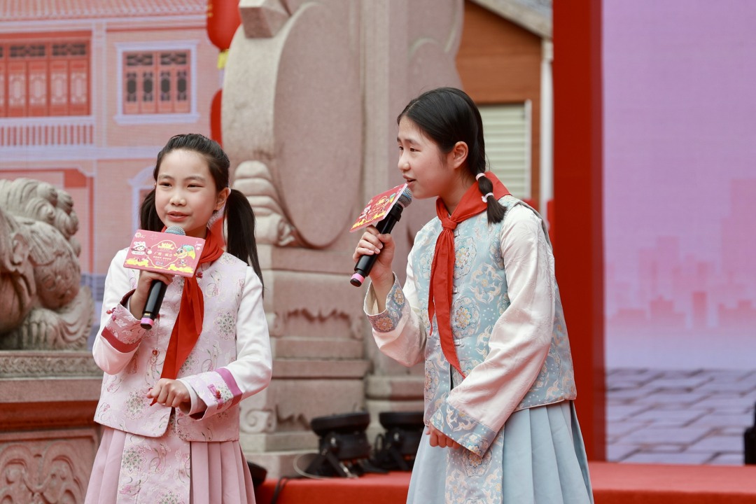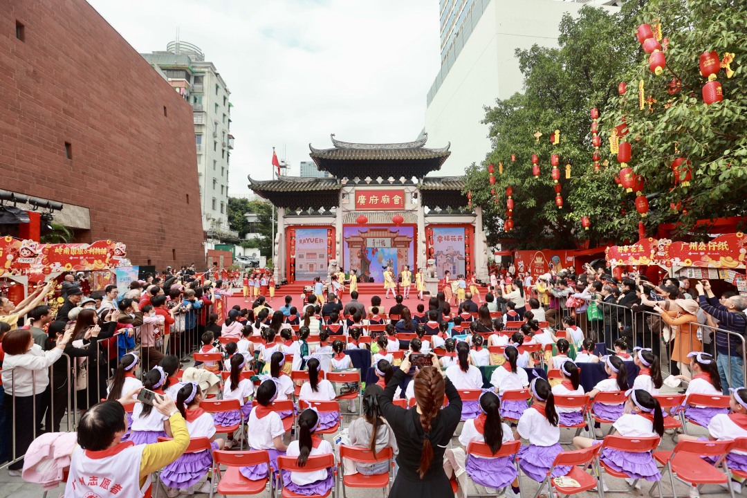 红棉似火、粤韵如潮。3月5日, 广州市越秀区少先队“童声YUE韵 幸福花开”粤语童谣传唱专场活动在2026广府庙会主舞台举行。本次活动作为2026广州“英雄花开英雄城” 系列活动之一,以童声颂英雄、以乡音传文脉,清脆嘹亮的童声伴着悠扬旋律回荡在忠佑广场,广府韵味与蓬勃朝气交织交融,上演了一场充满家国情怀的少年风采展。
