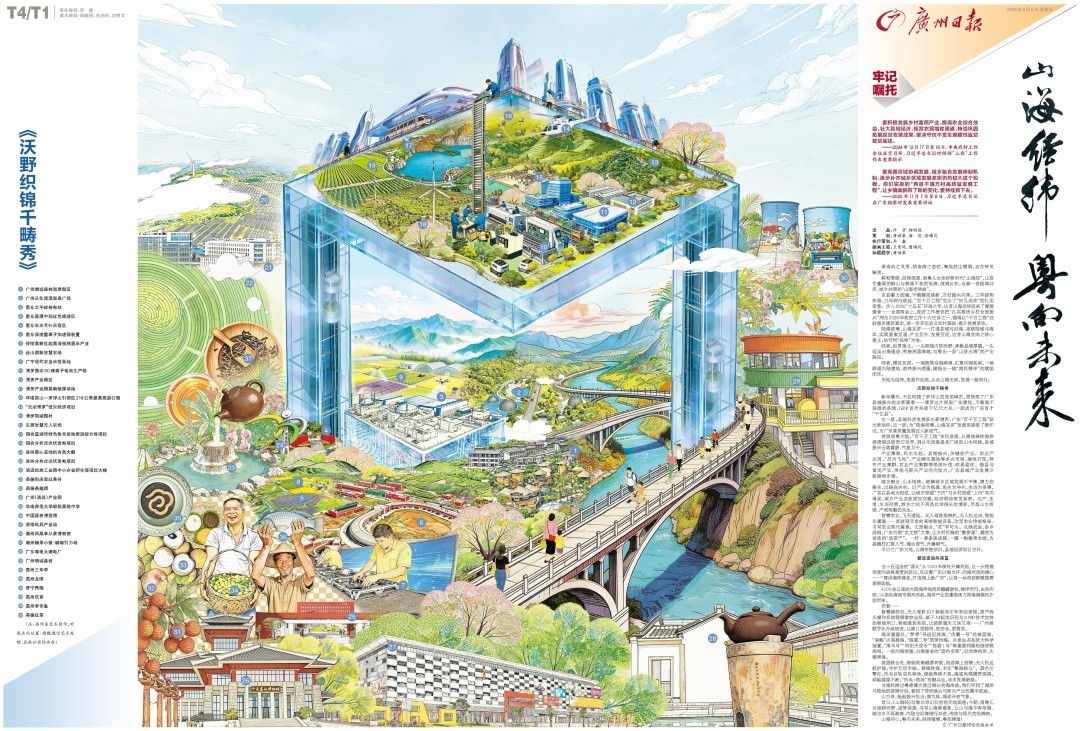 3月6日,广州日报重磅推出《山海经纬 粤向未来》广东高质量发展双子长卷,以报纸跨版形式呈现广东高质量发展的壮阔图景。
