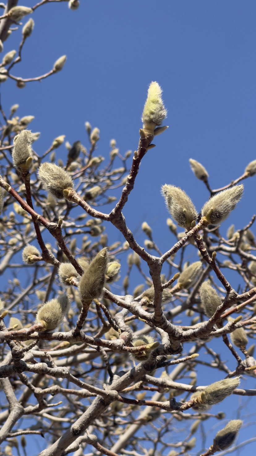 据专家表示,玉兰耐寒能力较强,是北方初春为数不多能够含苞待放的木本花卉。其花芽在前一年秋季便已形成,依靠外层厚实的苞片抵御严寒,待天气转暖便能迅速绽放。