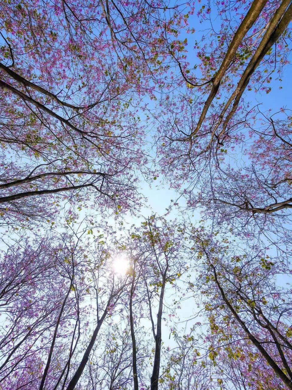 2.蓝田紫林专属风貌:记录蓝田紫林春日宫粉紫荆、黄花风铃木等花海景观、景区打卡点、花卉特色细节;