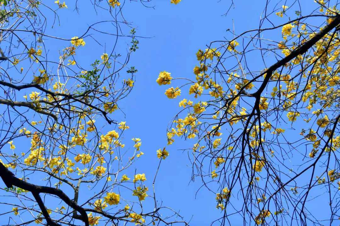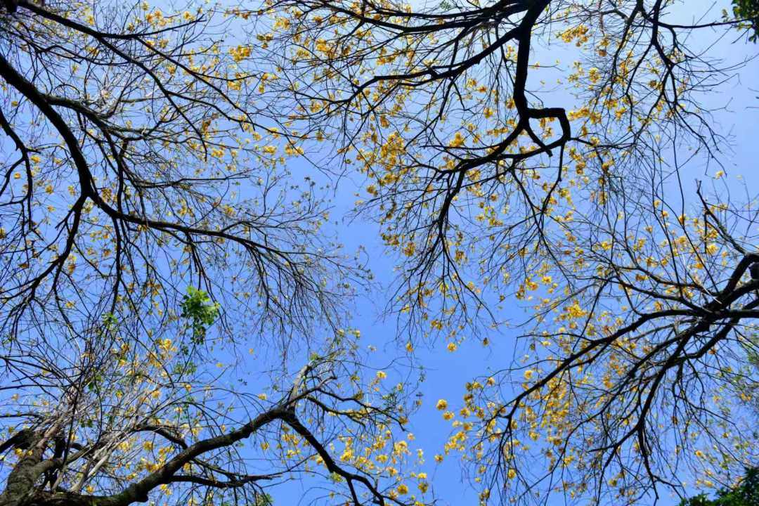 明艳的黄花风铃木主要分布在发展公园、玉树公园、尖峰岭公园、善坑顶公园、岭兴路等地。枝头繁花宛如金霞,让春日的城区充满生机。